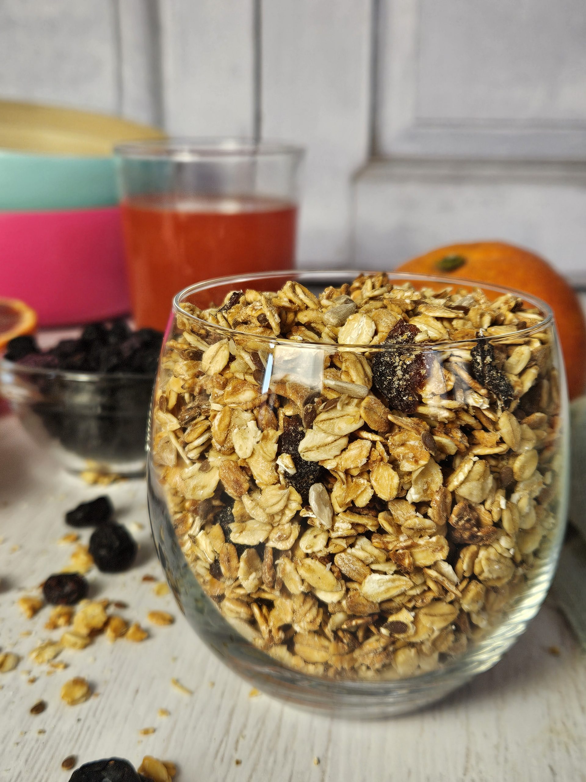 Fiocchi dโavena* (62%), sciroppo di riso*, mirtilli rossi* (10%) (61% mirtilli rossi, 39% succo di mela),sciroppo dโagave*, semi di girasole*, semi di lino*, estratto naturale di arancia* (10%), sale rosa dellโHimalaya